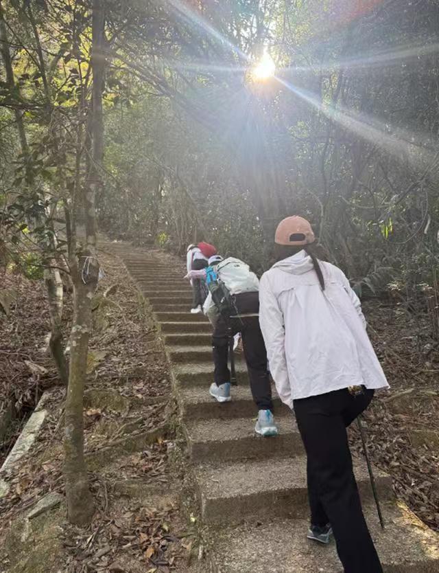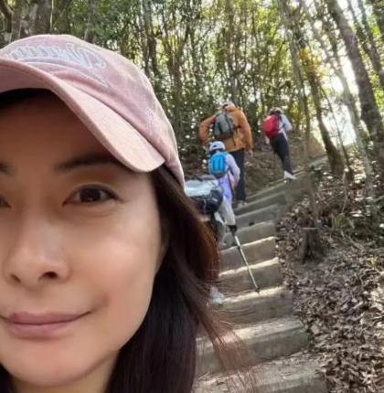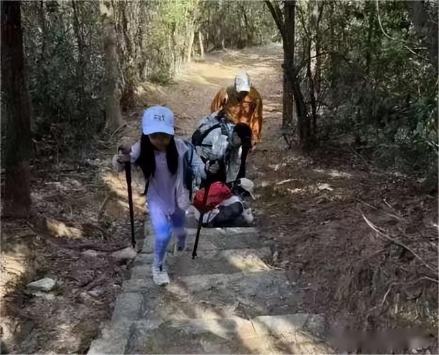 她手握登山杖,走在孩子身侧,步伐稳健,没有一丝豪门阔太的娇气,反而透着运动员独有的干练与沉稳。